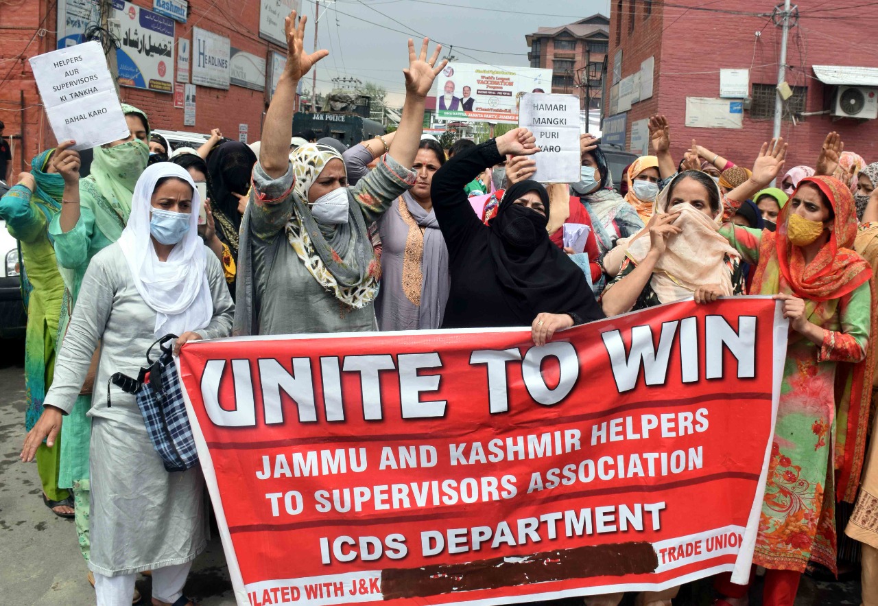 Srinagar,,11-Sep;Jammu and Kashmir Helpers to Supervisors Association of ICDS department today staged a protest demonstration against the administration’s order of their ‘’sudden” disengagement from the service.
